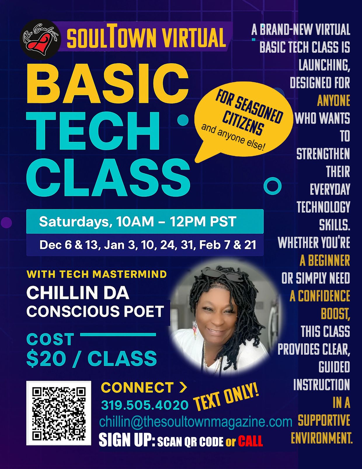 I have been called to teach what was never taught — to guide our seasoned citizens, and others who are interested into the world of technology with dignity, patience, humor, and cultural pride.